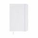 Caderneta emborrachada com elástico para lacre e marcador de página em cetim, contém aproximadamente 76 folhas com pauta na cor marfim.