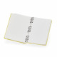 Caderneta emborrachada com wire-o, elástico para lacre e marcador de página em cetim. Possui páginas para dados pessoais, calendário de 2022 à 2024, página de contatos e aproximadamente 100 páginas em marfim com pauta.