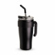 Obs.: Caneca térmica em inox com capacidade máxima de 800ml. Possui estrutura em parede dupla, alça ergonômica em plástico, tampa rosqueável com vedação a vácuo, protetor para bocal e acesso para canudo com tampa em silicone. Acompanha canudo de inox com ponta de silicone removível.
