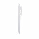 Obs.: Caneta plástica branca com detalhes no acionador e destravador colorido. Aciona por clique e para destravar basta apertar a parte inferior do clip.