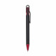 Obs.: Caneta plástica inteira preta com laterais do acionador colorido. Detalhes em relevo na parte inferior. Aciona por giro.