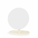 Obs.: Um espelho de mesa com estilo minimalista que se adapta a diversos ambientes. Possui base fixa e pedestal giratório em 360 graus, ambos feitos em plástico, permitindo uma montagem simples e o ajuste em diferentes ângulos e posições.
