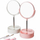 Obs.: Espelho de mesa dupla face giratório com design moderno e funcional. Com base e moldura de plástico e pedestal de alumínio, ele é fácil de montar e adequa-se bem a qualquer ambiente. Sua base contém três divisórias para guardar objetos diversos.