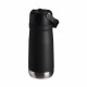 Garrafa térmica de parede dupla em inox, capacidade de 500ml. Tampa com alça de transporte, bico flip e canudo interno.