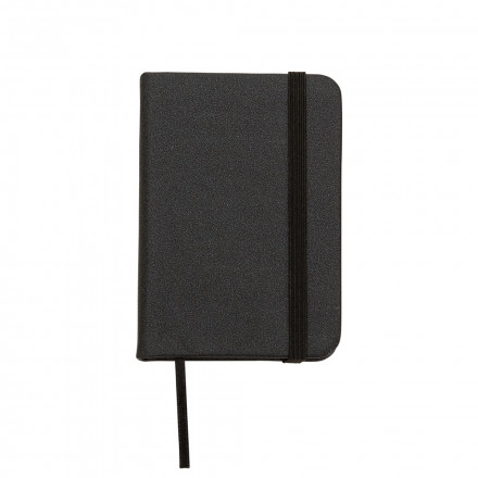 Obs.: Mini Caderneta tipo moleskine, produzida em material sintético brilhante com marcador de página em cetim e fita elástica para fechar. Contém aproximadamente 80 folhas amareladas sem pauta.