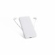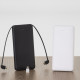 Power bank plástico de 10.000mAh com indicadores led de bateria e cabos acoplados: Tipo-C e V8. Acompanha cabo USB V8 e adaptador Lightning.
